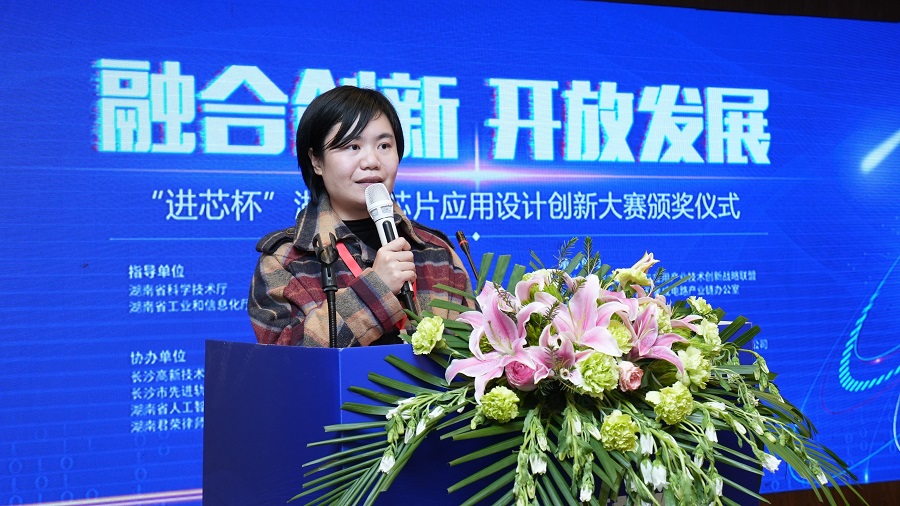 評審結(jié)束后,長沙工業(yè)和信息化局副局長張芬發(fā)表重要講話。她表示集成電路產(chǎn)業(yè)的高質(zhì)量發(fā)展離不開產(chǎn)業(yè)鏈上各企業(yè)的協(xié)同創(chuàng)新,本次芯片應(yīng)用設(shè)計創(chuàng)新大賽秉承著“用心打造產(chǎn)業(yè)生態(tài),推動行業(yè)協(xié)同發(fā)展”的精神,重點挖掘芯片創(chuàng)新應(yīng)用領(lǐng)域的優(yōu)質(zhì)項目和專業(yè)人才,這是一次多方共贏、成效倍加的有益嘗試。最后她誠摯感謝行業(yè)人士和各大高校對本次比賽的大力支持,同時也真誠地希望越來越多的企業(yè)家和專業(yè)技術(shù)人才選擇留在長沙,為長沙集成電路產(chǎn)業(yè)發(fā)展添磚加瓦。