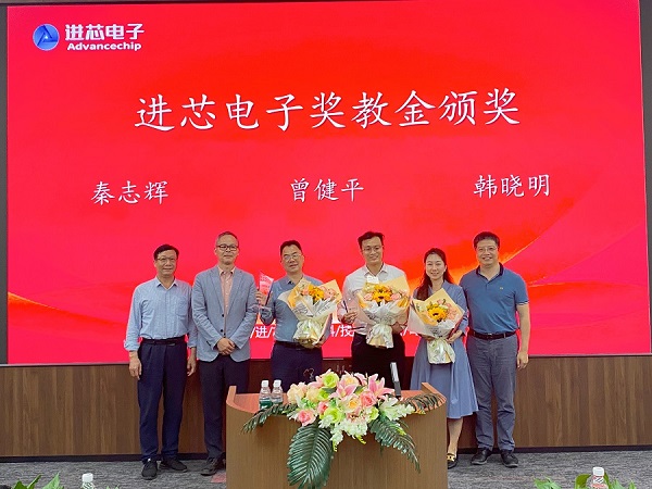 湖南進(jìn)芯電子科技有限公司副總經(jīng)理周良業(yè)宣讀了2022年湖南大學(xué)“進(jìn)芯電子獎(jiǎng)教金”獲獎(jiǎng)老師名單,進(jìn)芯電子黃嵩人、周良業(yè)、陳迪平為獲獎(jiǎng)老師頒獎(jiǎng),并送上了祝賀鮮花。