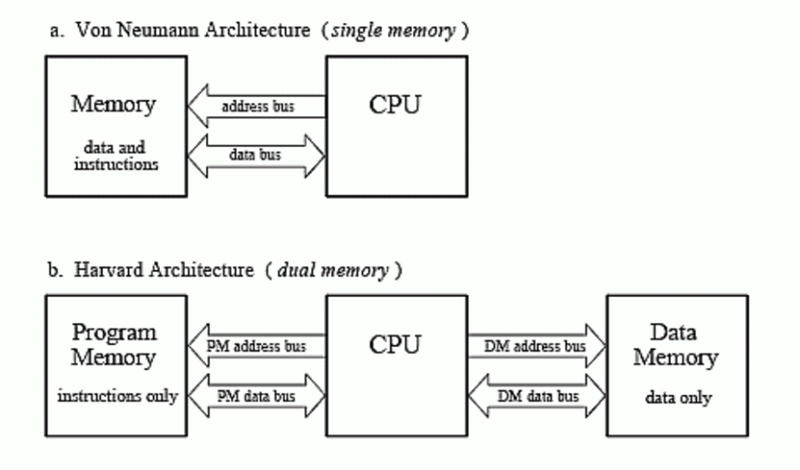 當(dāng)前,雖然最近幾年有一個(gè)叫做存內(nèi)計(jì)算的架構(gòu)非?;馃?,但我們比較熟悉的處理器架構(gòu)基本都是馮諾依曼架構(gòu)(von Neumann architecture)和哈佛架構(gòu)(Harvard architecture)。其中,馮·諾依曼結(jié)構(gòu)的處理器使用同一個(gè)存儲(chǔ)器,經(jīng)由同一個(gè)總線傳輸;哈佛結(jié)構(gòu)是一種將程序指令存儲(chǔ)和數(shù)據(jù)存儲(chǔ)分開(kāi)的存儲(chǔ)器結(jié)構(gòu)。